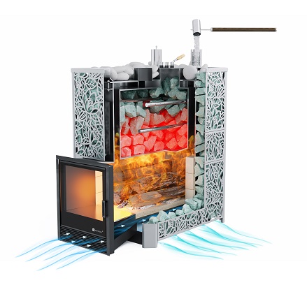 Особо прочная газо-дровяная печь постоянного действия, предназначенная для создания в парильном отделении общественной или коммерческой бани, условий русской бани и сауны, с присущим ей температурно-влажностным режимом. Резной кожух-сетка с открытой каменкой под закладку камней или с ламелями из природного камня позволяет сохранять выделяемое печью тепло и улавливать инфракрасное излучение. Ламели для кожуха могут быть изготовлен из четырёх видов природного камня: