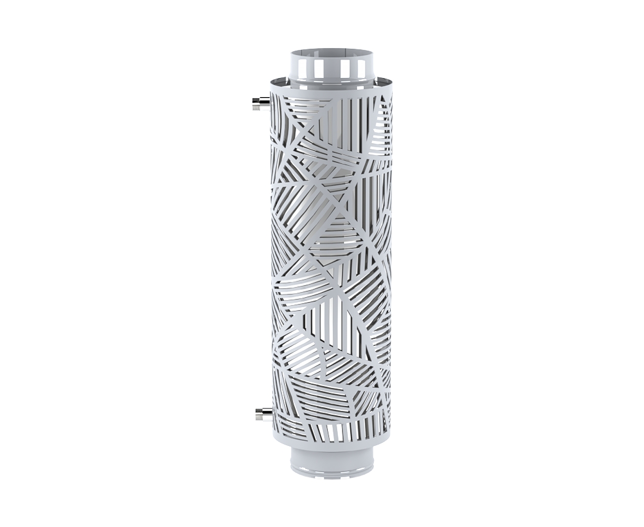 Применяется как стартовый участок дымохода, использует дымовые газы для непрерывного подогрева воды в системе горячего водоснабжения. Облицован снаружи декоративным листом из металла.