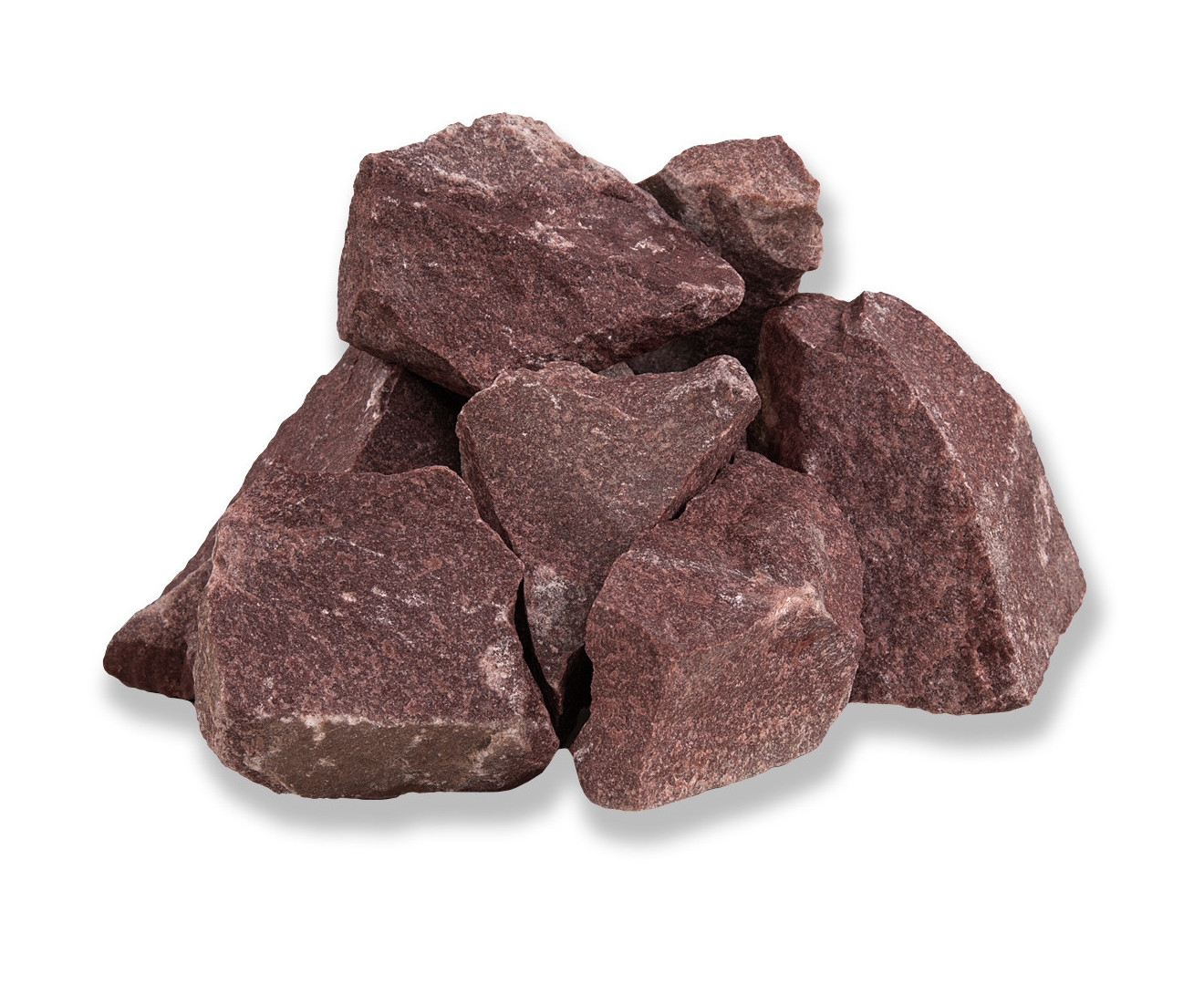 Камень малиновый кварцит - экологически чистый, долговечный и необычайно прочный материал. Обладает устойчивостью к внешним агрессивным воздействиям. При интенсивной эксплуатации в условиях высоких температур (банные печи) материал сохраняет свою форму и структуру, не выделяя при этом вредных примесей. Рекомендуется для закладки в открытую каменку.