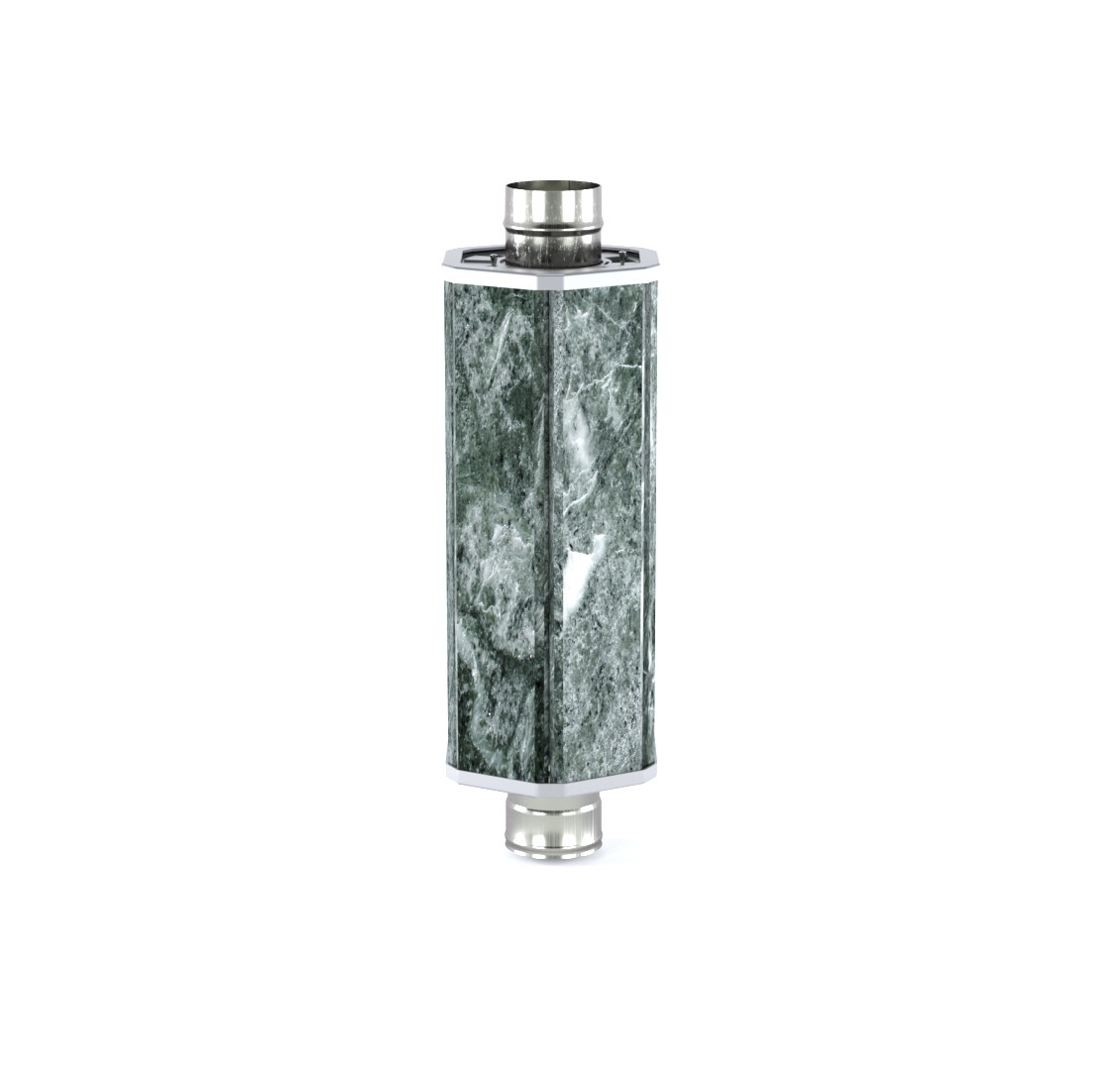 Экономайзер - это стартовый участок дымохода, который служит для дополнительного отбора тепла от дымовых газов. Защитный экран экономайзера из камня улавливает прямое излучение разогретых стенок трубы и делает исходящее тепло мягким и приятным.