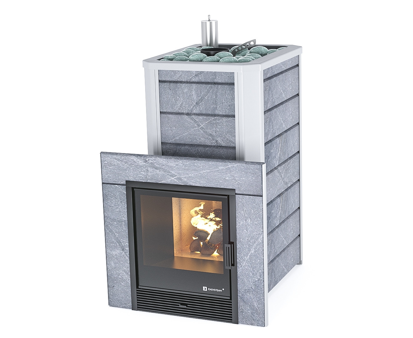 Закрытая каменка позволяет разогреть камни до высоких температур 500-600 градусов, а встроенный парогенератор обеспечивает попадание пароводяной смеси на нижний самый разогретый слой камней, и на выходе получить качественный мелкодисперсный лёгкий пар.