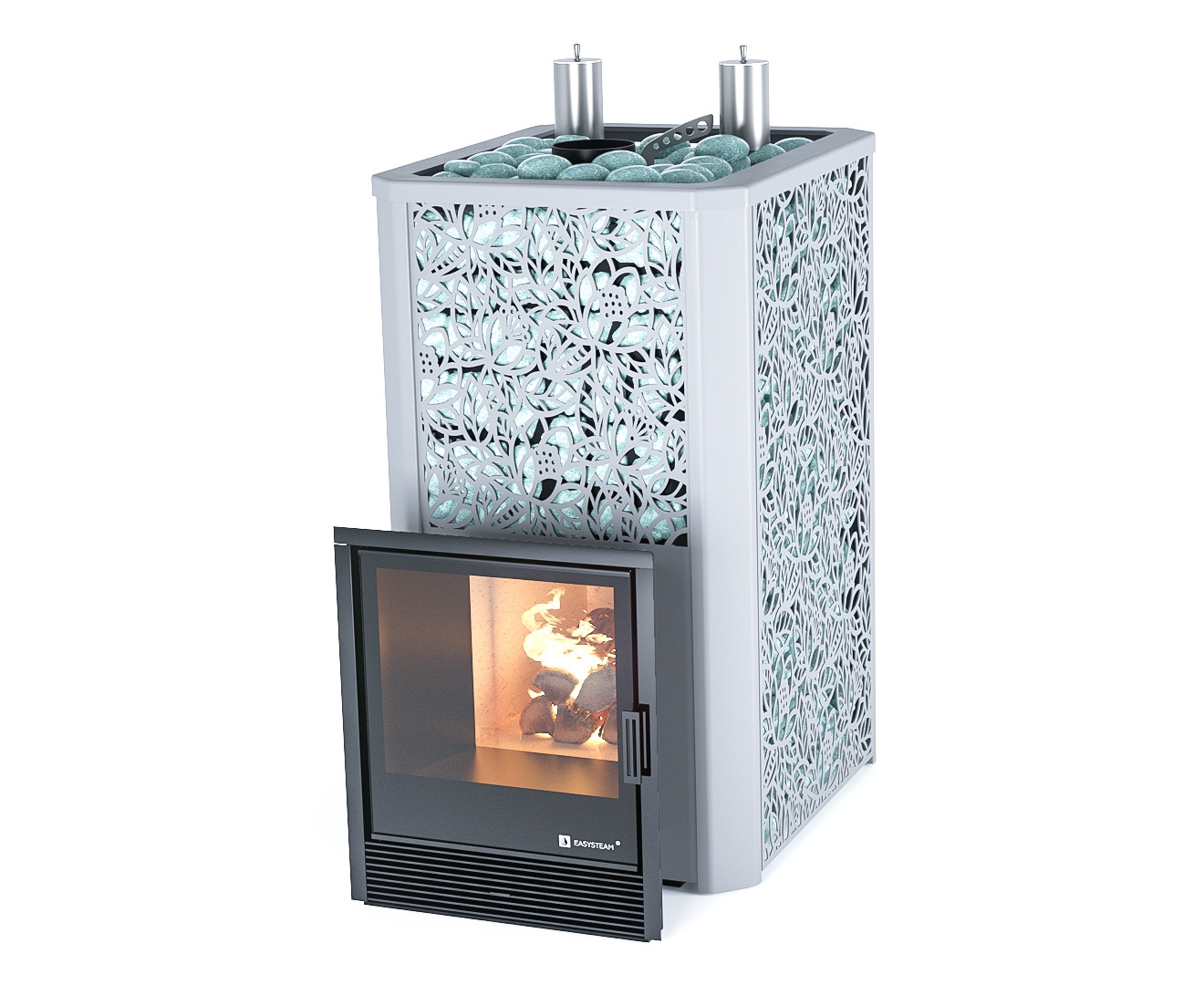 Печь оснащена съёмной закрытой каменкой, позволяющей разогревать находящиеся в ней камни до температуры 600 градусов.