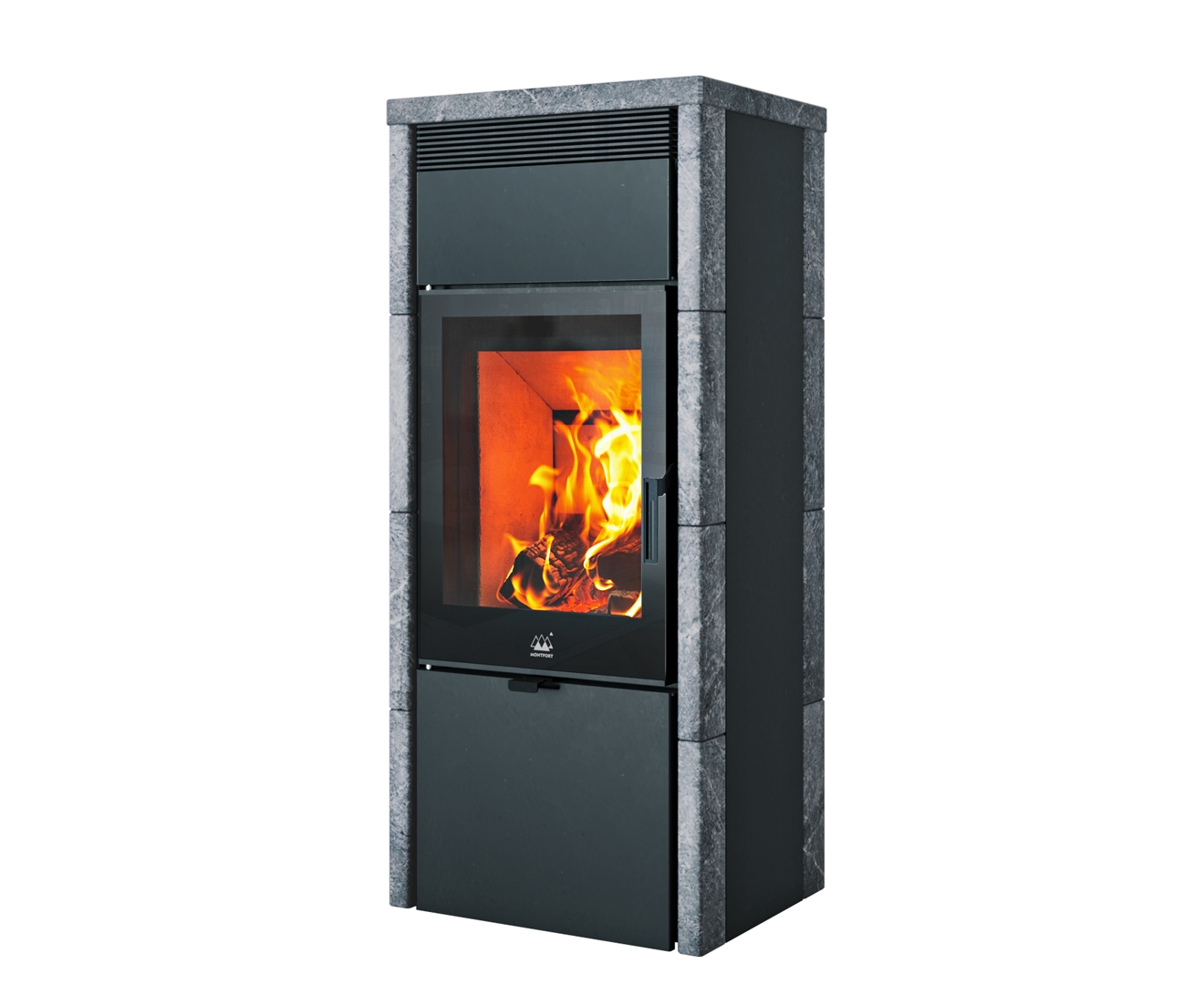 • Отопительную печь-камин MONTFORT с высоким КПД и номинальной мощностью 8 КВт, которая предназначена для обогрева жилых и общественных помещений объёмом от 80 до 160 м3. • Металлическая гнуто-сварная конструкция с вставными элементами из натурального камня, которые позволяют накапливать и удерживать тепло. Жаропрочная нержавеющая сталь марки AISI 430 толщиной корпус 3 и толщиной топки 4 мм. • Топка оформлена шамотными плитами толщиной 20 - 30 мм. • Подовая конструкция, в которой отсутствует зольный ящик, и трехсторонняя подача воздуха для горения позволила добиться высокой температуры и чистоты горения дров. • Компактные габариты и эстетичный современный внешний вид позволяют органично вписать печь в любой интерьер. • Большое панорамное стекло топочной дверки придаёт камину стильный, оригинальный вид и позволяет насладиться красотой горения живого огня. • В верхней части камина встроен тепловой конвектор, который повышает скорость нагрева помещения и увеличивает теплоотдачу за счёт дополнительной конвекции. Отвод дымовых газов осуществляется через дымоход 150-го диаметра. • В нижней части конструкцией печи-камина предусмотрено подключение притока воздуха напрямую с улицы через воздуховод 100-го диаметра, что наиболее актуально для помещений с плохой вентиляцией. • Наиболее подходящим топливом для печи-камина являются сухие дрова лиственных пород размером до 23 см или качественные топливные брикеты из прессованных опилок. • Максимальный размер разовой закладки дров составляет 7,5 кг, время прогорания которой составляет несколько часов. • Ранее камины устанавливали лишь в загородных домах, но сегодня любая гостиная с хорошей площадью способна вместить в себя данный арт объект, который выполняет отопительную и декоративную функцию. Камины, как дизайнерское решение, позволяют избежать однообразия в интерьере, придать особую расслабляющую уютную атмосферу.